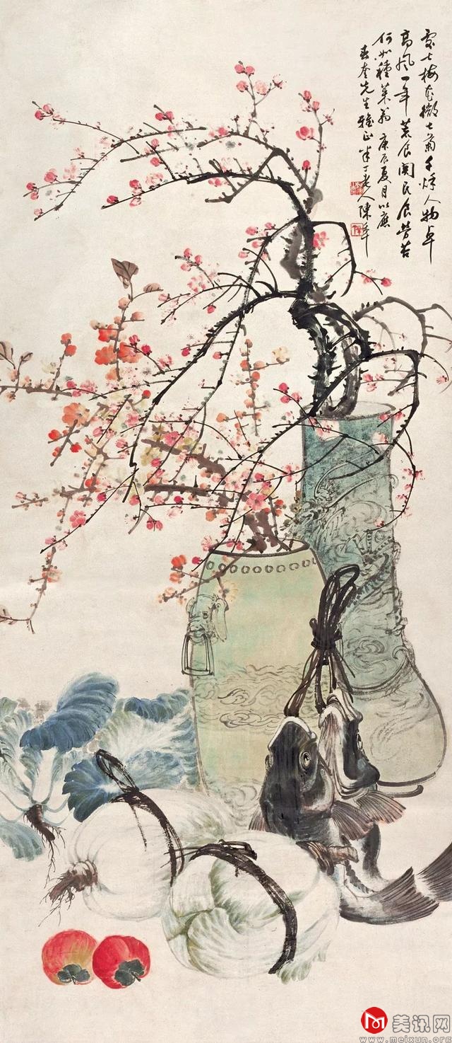 陈半丁(1876—1970)是20世纪中国诗、书、画、印皆能的艺术大家。上海十年,陈半丁几乎全面继承了吴昌硕书画印的衣钵,所以很多人认为陈半丁的书画,尤其是花鸟画,无法超越乃师,但学艺其实并不一定要全面超越老师,吸收前辈的营养化为自己的东西,创造出自己的绘画路子,其实是最好的传承,陈半丁就是很好的例子。