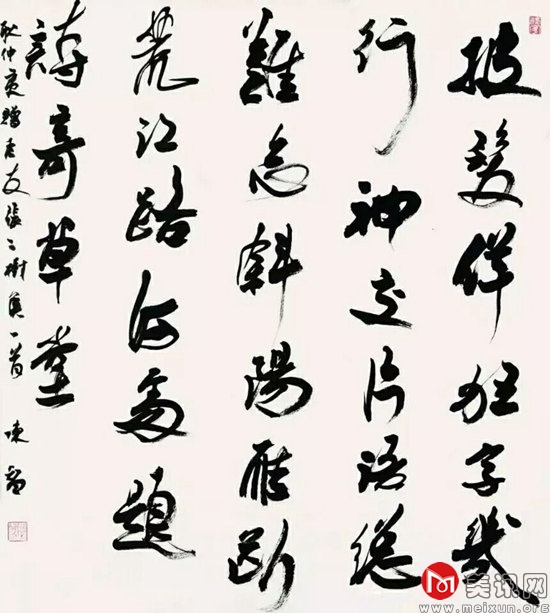 作为一门历史传承性很强的艺术形式,书法的发展或者说文人书法的发展如何才能具有“当代性”是一个值得深入探索的问题。当前学界提出的“新文人书法”是和当代文化语境、当代书法艺术的发展脉络比较契合的,它承接的是传统文人书法的余脉,高举的仍然是文人书法的大旗。事实上,书法自晋唐以降的发展史,其主流就是文人书法的流变史,书法的当代特质很自然的具有时代特征,而无所谓新、旧文人书法之分。文人书法在当代的发展就是要倡导文质兼备的创作风尚,是要培养内蕴丰富的意境和气格,是要求书家在自性解放的基础上,创作上具有与当代语境相融合的个体学识与修养表达。