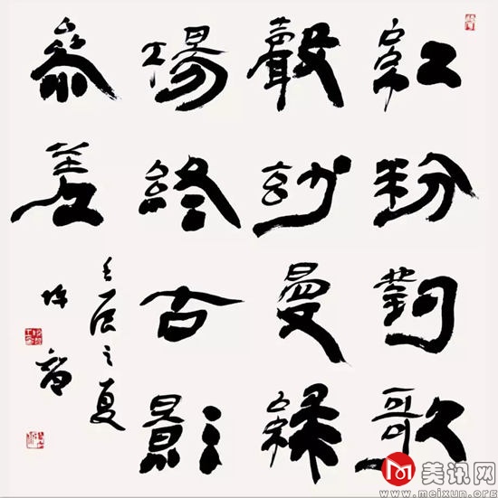 当代书法从上世纪7、80年代的复苏,书发热兴起以来,受80年代各种文艺思潮,尤其是西方艺术思潮的介入,时代思潮突破了固有的观念禁锢,书法实践者因为开放的社会形态和学术思想的自由,书法家的使命意识和个性解放使得大家改良传统书法的愿望显得如此迫切。从老一辈书法家最初对传统书法的无限依赖,到新生代书法家利用西方文艺思潮,对几千年的传统书法创作形式进行了一些尝试性的探索和思考,并且做出了大胆的反叛,虽然这些艺术实践后来被证实是一种实践偏向,但其对当代书法发展的探索意义却是不容否定的。90年代,以中国书协和各级地方书协组织等权威的学术团体为主体,引进西方现代的评审机制,书法活动开始全面进入展览化阶段,这为繁荣书法创作、选拔书法人才起到了很好的作用,并且各种书法理论研讨会、书法流派研究探索方兴未艾,及时的与展览模式形成了有效互动,同时让一批有学术思想的书法家开始走到了当代书法的前沿阵地。这个阶段所表现出来的是一种理性的思考和科学的艺术追求相结合的书法潮流,既包含了对中国书法创作的继承与发扬,也包括了中国书法全面复兴后新旧融合的主流创作模式。进入新世纪以后,活跃的学术思潮开始逐渐冷却,书法创作借着传统回归的旗号,艺术思考形成相对单一的声音。加上主流书法展览的极度扩张,从选拔人才到培训人才,书法展览和艺术产品似乎全面进入了产业化时代,造就了大批技术型的书法人才。书法开始步入微时代,创作表现为审美趋同、艺术个性缺乏、文化功能隐退,伪传统、形式至上、空泛抒情的作品充斥着各类大小展览,加上新兴传媒的介入,中国书法大繁荣大发展的局面在泡沫化的发酵和膨胀。伴随着批量生产而来的书法作品却在思想、学术、文化、个性方面暴露出让人忧郁的苍白和乱象。