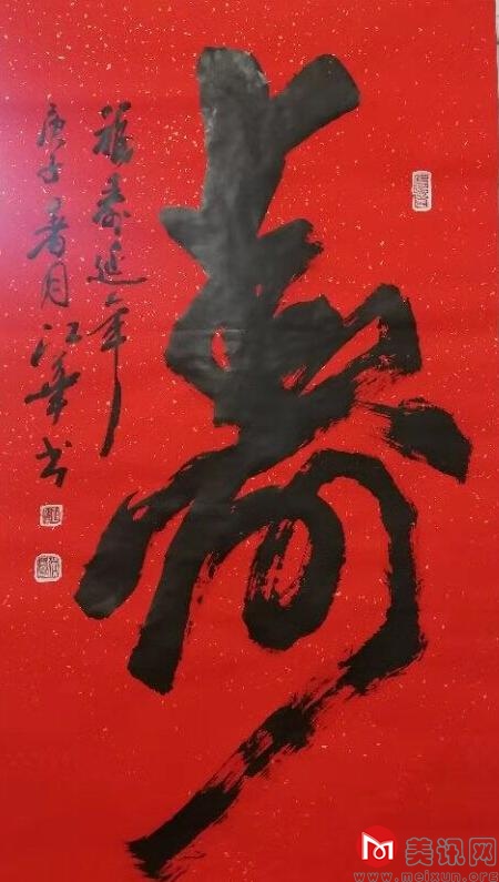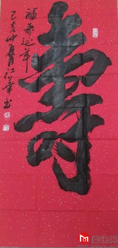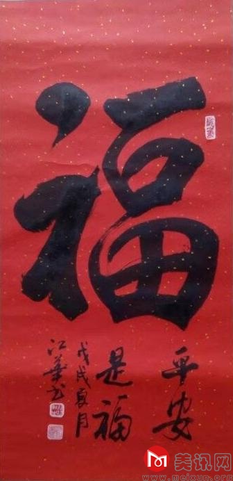 江华,又名江凤华,男1955年生,安徽亳州市人,自幼喜爱书法,善榜书。多次参加全国书法大赛并获奖。曾获全国榜书大赛优秀奖,作品“精气神”被上海世博会国旗班收藏,多幅作品被国内外人士收藏。现任安徽省书协会员,中国书画收藏频道美讯网特邀书法家;汤都书画院会员;中国教育电视台水墨丹青栏目组水墨丹青书画院会员。为老兵方阵题写“社会主义核心价值观”24字,2020年静赏轩歌颂母爱共建人类命运共同体书画展一等奖。