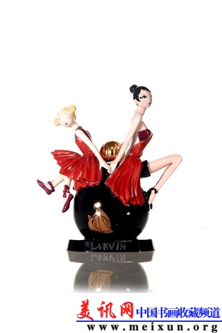 此举是为向品牌创始人 Jeanne Lanvin 致敬,正如品牌母子图商标所体现的那样,Jeanne Lanvin 的成功始于为女儿 Marguerite 制作服装和她俩着名的母女装扮。LANVIN 的第一款香水Arpege 和品牌标志性的浅蓝色黑丝带包装盒也是瓷偶系列中重要元素。围绕着品牌经典展开的是 LANVIN 最近的设计,瓷偶穿着品牌 09 春夏的服饰,比例缩小数倍,但神韵不减。水晶石、珍珠、缎带、亮片等装饰都是用实物制作,使瓷娃娃更为逼真生动,仿佛真正的时装玩偶。每款瓷偶限量发售 800 件,LANVIN 的粉丝们可要抓紧哦!