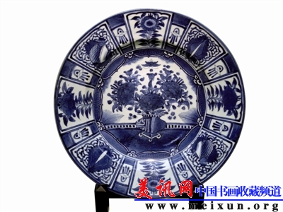 日本陶瓷学者把这类瓷器称为“芙蓉手”,以其所绘图案形似一朵盛开的芙蓉花而得名。克拉克瓷的造型有盘、碗、瓶、军持等,以盘较为多见、且最具典型性。盘有圆口与花口之分,胎体较薄,内底微塌,圈足微向内敛。足上多粘有砂粒。克拉克瓷的最主要特征体现在图案装饰上。以盘为例,盘内底的纹饰多为人物、花卉、草虫、静物花篮、飞禽走兽或变形抽象纹等。盘内壁一般为8个或6个莲瓣形或扇形开光,个别为十开光或十二开光。开光内绘杂宝、花卉、人物等,有些器物上还书有“福”、“寿”、“福寿康宁”等吉祥文字。