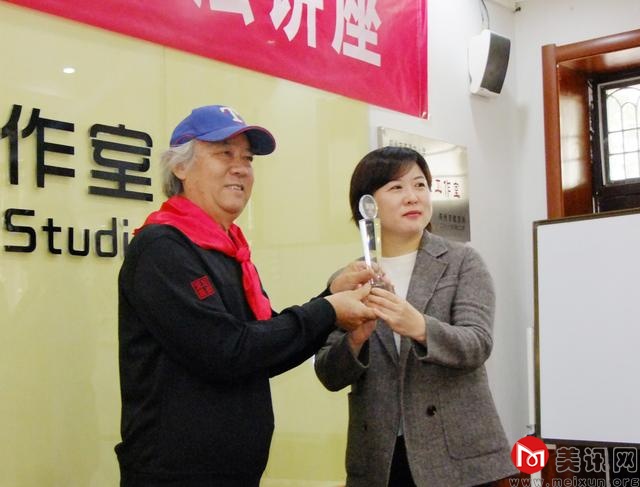 王莹校长为常健君教授颁发终身荣誉辅导员奖杯