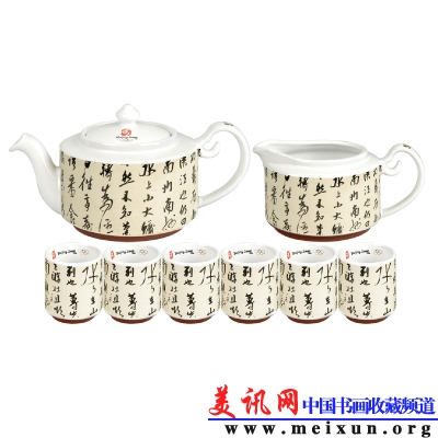 根据有关资料表明,陶瓷上的书画始于唐代,在湖南长沙窑出土的瓷器上偏重于诗句,宋代河北磁州的磁窑出土的瓷器偏重于词令,元朝瓷器上出词曲,清代景德镇瓷器上有诗词、曲赋、书画合一的艺术装饰。在长沙窑出土的陶瓷题词,内容非常丰富,有酒诗、情诗、离别诗,五言、七言绝句等形式。这些诗句大多数是题在茶壶的茶咀下部。这一部分最为醒目,当主人为客人斟酒上茶的时候,壶嘴正对着客人,诗句直接映入客人的眼帘,如果壶上的题诗中随和席间气氛,会起到融情的作用,即显礼又近俗,据萧湘李建毛先生编着《瓷器上的诗文与绘画》(湖南美术出版社出版)中介绍,现今累计尚存的一百多首完整的瓷铭诗,其中有一首五言诗是瓷铭上的鼻祖篇,其诗文:“买人心惆怅,卖人心不安,题诗安瓶上,将与买人看”。这首“题诗安瓶上”,用来刺激顾客购买欲望,一种促销手段,它刻画出买卖双方在生意成交过程中心里互动的过程,卖方为求得生意,以诗想题,“题与买人看”,动之以情,形成诗与瓷的美景。