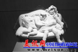 展览中有一件来自德国的“德国素胎瓷塑孩童像”十分精美,瓷塑中的两名小孩,一男一女,相依而睡,脸带淡淡的微笑,是难得一见的瓷塑珍品。因为18世纪以前,欧洲还没有陶器,直至18世纪初,在中国和日本影响下,欧洲各国纷纷开始生产瓷器,而德国是欧洲第一个生产出瓷器的国家。这件“德国素胎瓷塑孩童像”是陈嘉庚当年花120元在北京琉璃厂古玩市场买下的。当年120元钱可是一大笔钱。